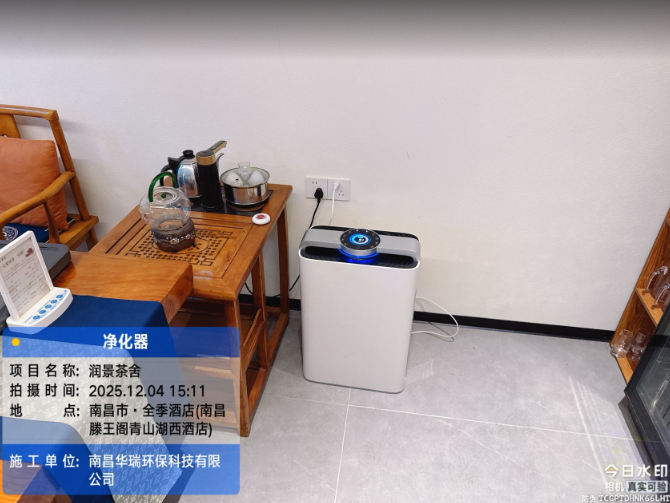 项目名称:润景茶舍安装空气净化器施工时间:2025年12月4日