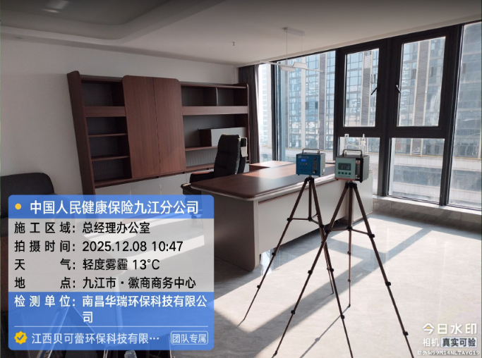 项目名称:中国人民健康保险九江分公司甲醛检测施工时间:2025年12月8日