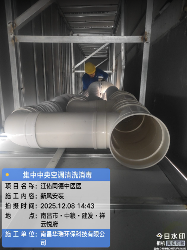 项目名称:江佑同德中医院新风安装施工时间:2025年12月8日